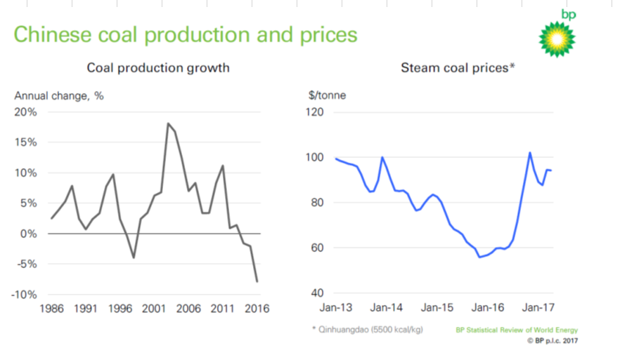 Click on image at right to see a graphic on how China's coal production fell, and prices rose, in 2016.