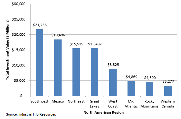 Click on the image at right to see a graphic of the North American regions with the highest value of gas-fired power development scheduled to kick off construction between 2017 and 2020.