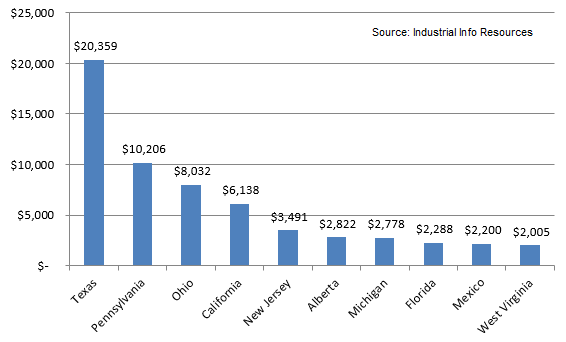 On a state-by-state basis, Texas, Pennsylvania, Ohio, California and New Jersey have the largest dollar value of gas-fired power projects scheduled to break ground between 2017 and 2020.