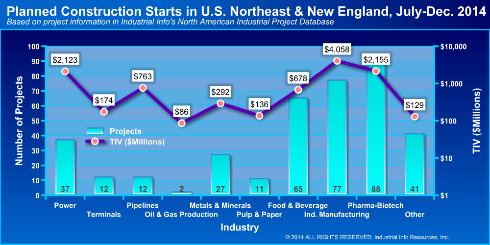 The Northeast and New England market regions of the U.S. have industrial projects totaling approximately $10.6 billion that are planned to kick off in the second half of 2014.